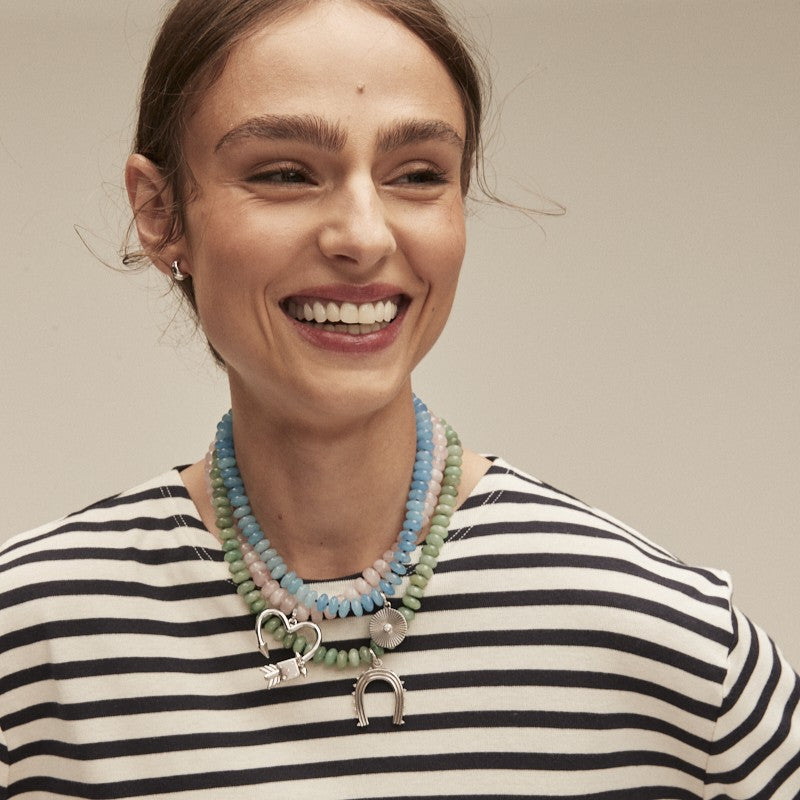 Hand-strung in LA with calming blue quartz and green aventurine. A limited edition necklace designed to pair with your favorite Adina Reyter charms.