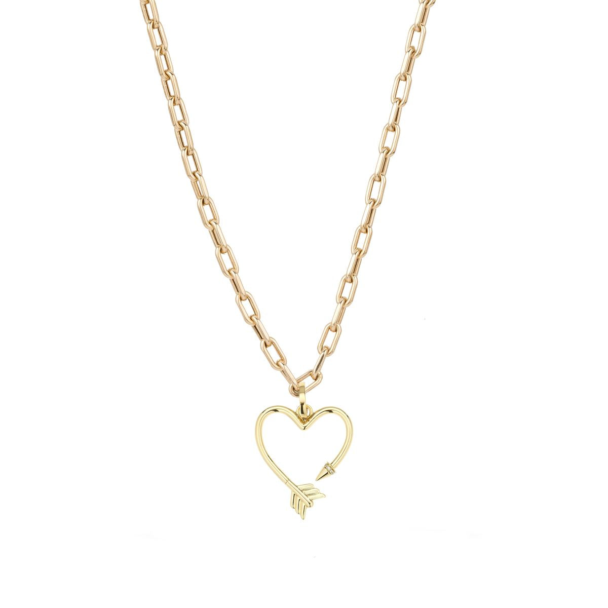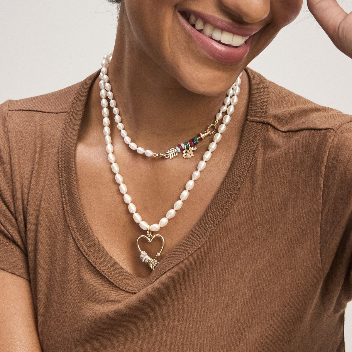 14k yellow gold hinged heart arrow charm with hand-set pave diamonds. Wear it alone, or slide on your favorite Mini Beads. The arrow feathers unscrews, allowing you to add your favorite Mini Beads.