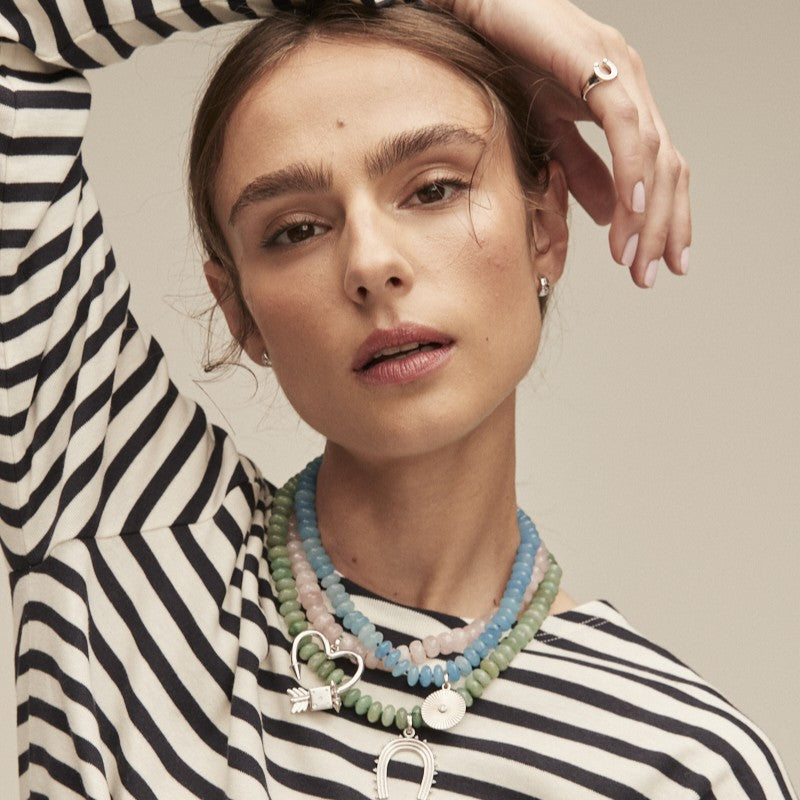 Hand-strung in LA with green aventurine stones. A limited edition necklace designed to pair with Adina Reyter Hinged Charms. Add color to your stack.