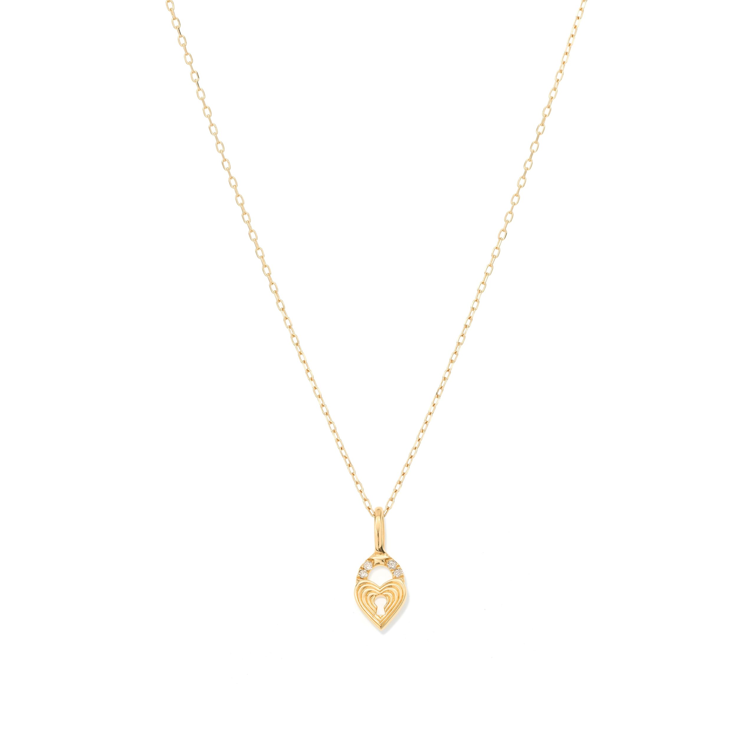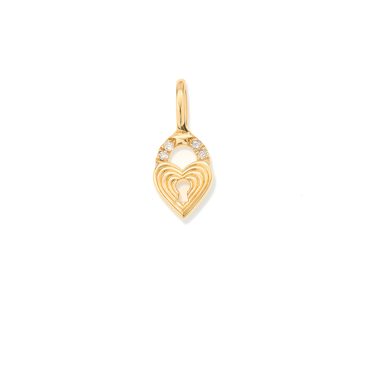 Padlock heart charm in solid 9k gold with a bezel-set diamond. A meaningful charm for your charm necklace.